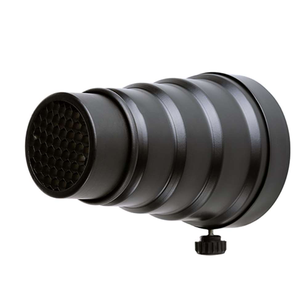 Jinbei DII Snoot. Κωνικό κανονάκι (Snoot) για επικέντρωση του φωτός σε συγκεκριμένα σημεία, με σκοπό την ανάδειξη λεπτομερειών, δημιουργία φωτιστικών εφέ, σημειακό φωτισμό του φόντου κλπ.