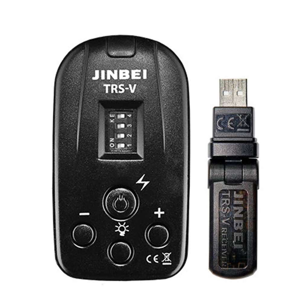 Jinbei TRS-V USB. Πομπός και δέκτης USB  ραδιοσυχνοτήτων για φλας και φωτιστικά συνεχούς φωτισμού Jinbei. Χάρη στον δέκτη USB το σύστημα αυτό είναι συμβατό και  με τα μοντέλα DM3/ EF-200v LED/HD-600V/MSN-600/SPARKII αλλά και με όλα τα μοντέλα που δεν διαθέτουν θύρα USB και είναι συμβατός ο πομπός από μόνος του.